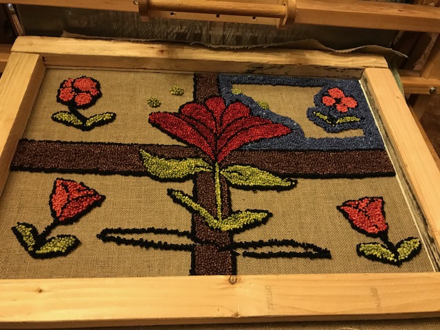 Needle Punch RugrosewoodmnwMar 5, 20191 min readUpdated: Mar 14, 2019The needle punch rug frame is done and the first rug is in progress. I am enjoying making my own patterns and dying the colors to use in them.The rug progresses little by little.